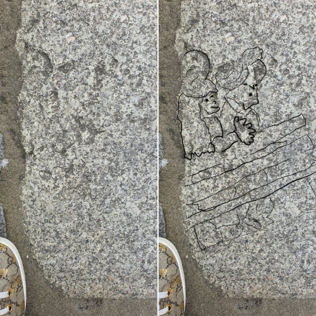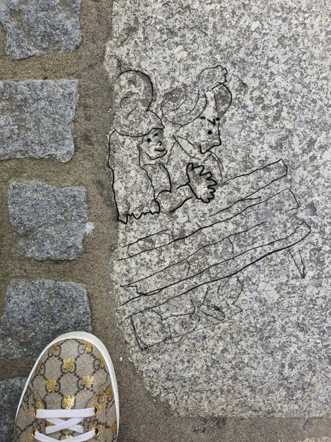 Erna und Klaus mit doppeltem Schulterblick auf der Parkbank. Du hast sie mit Deinem Klick auf das Bild aufgeschreckt. Vorher unterhielten sie sich über Stechapfeltee und Radiergummitiere. Erna möchte sich eins kaufen und Klaus meint, dass richtiger Stechapfeltee gemust werden muss.