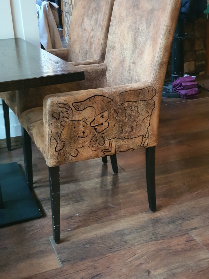 Ach, da erschrak die Luise. Sie spielte gerade mit ihrem Teddy und wie aus dem Nichts stand da ein KlötenRüsselschaf auf dem Teppich.
