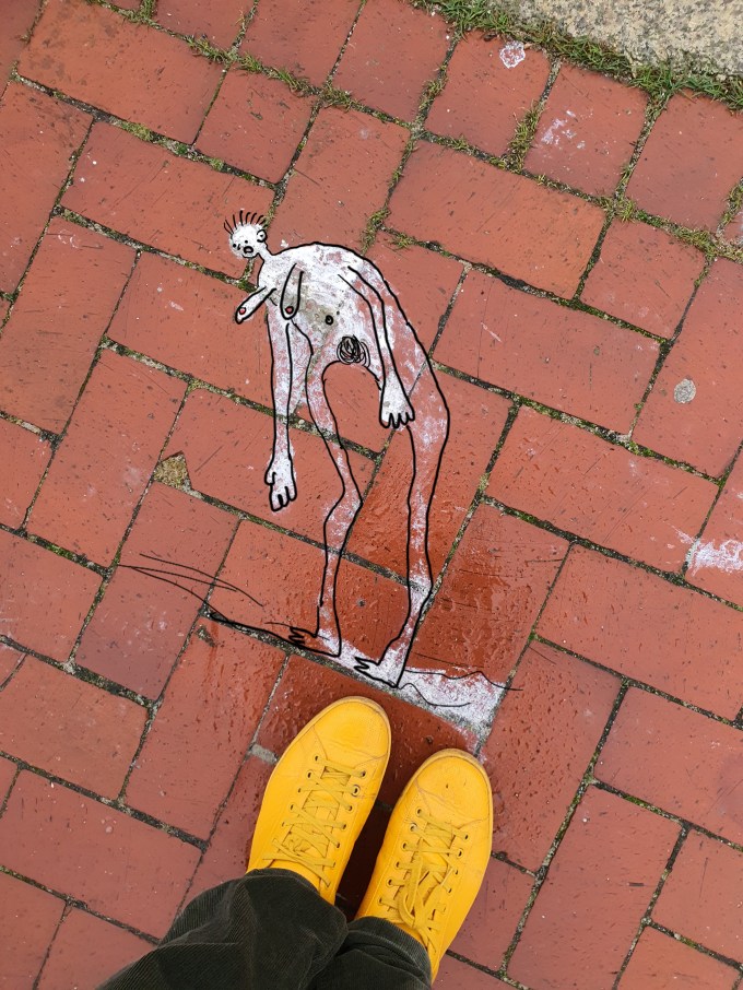 Bärbel ist auf dem Weg in ihr Heim. Sie kommt aus irgendeinem Swingerclub, in dem sie betrunken gemacht wurde. Dann landete sie auf einer Matratze und die Klamotten sind immer noch da. Hier sehen wir sie, wie sie zwar noch steht, aber schon im Fallen ist.