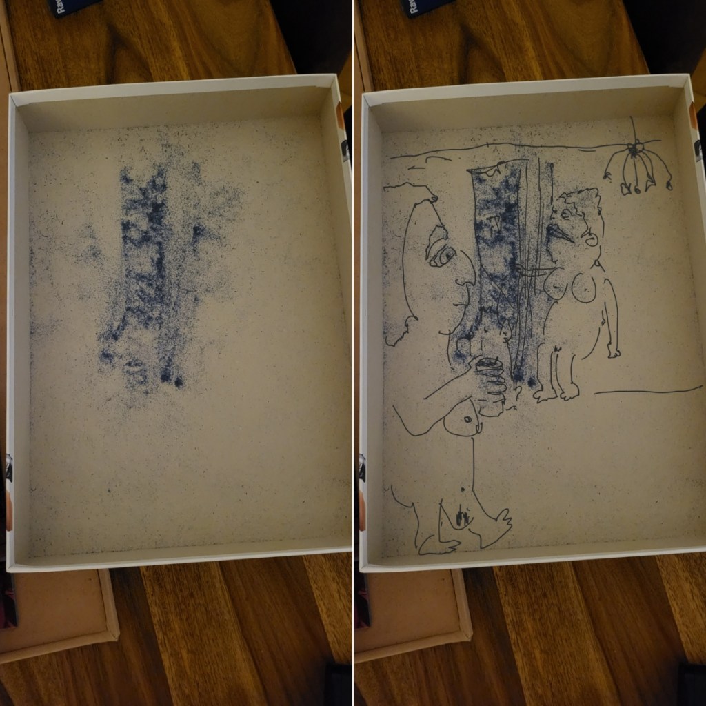 Der Altersunterschied zwischen Sundra und Gabrielle ist groß. Größer als man wahrscheinlich sehen kann. Die eine wirkt zu alt und die andere zu jung. Nun ja, auf diesem Bild sehen wir sie gerade in einem FKK-Ferienheim mit eigener Terrasse. Sie wollen raus und nehmen ihren Hund mit. Es sieht gar so aus, als würde das Grün regelrecht durch die Türe knallen.