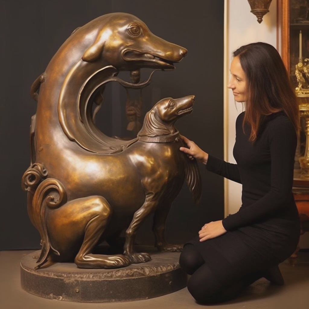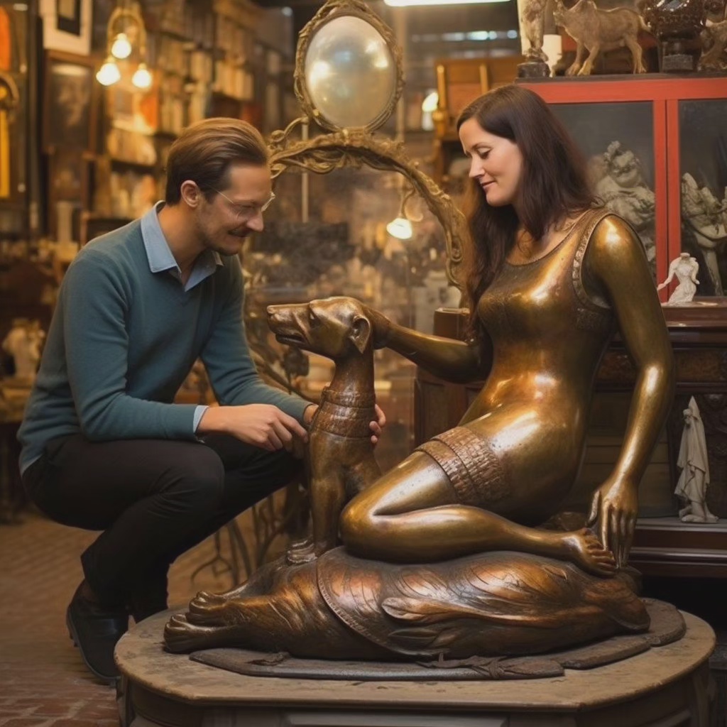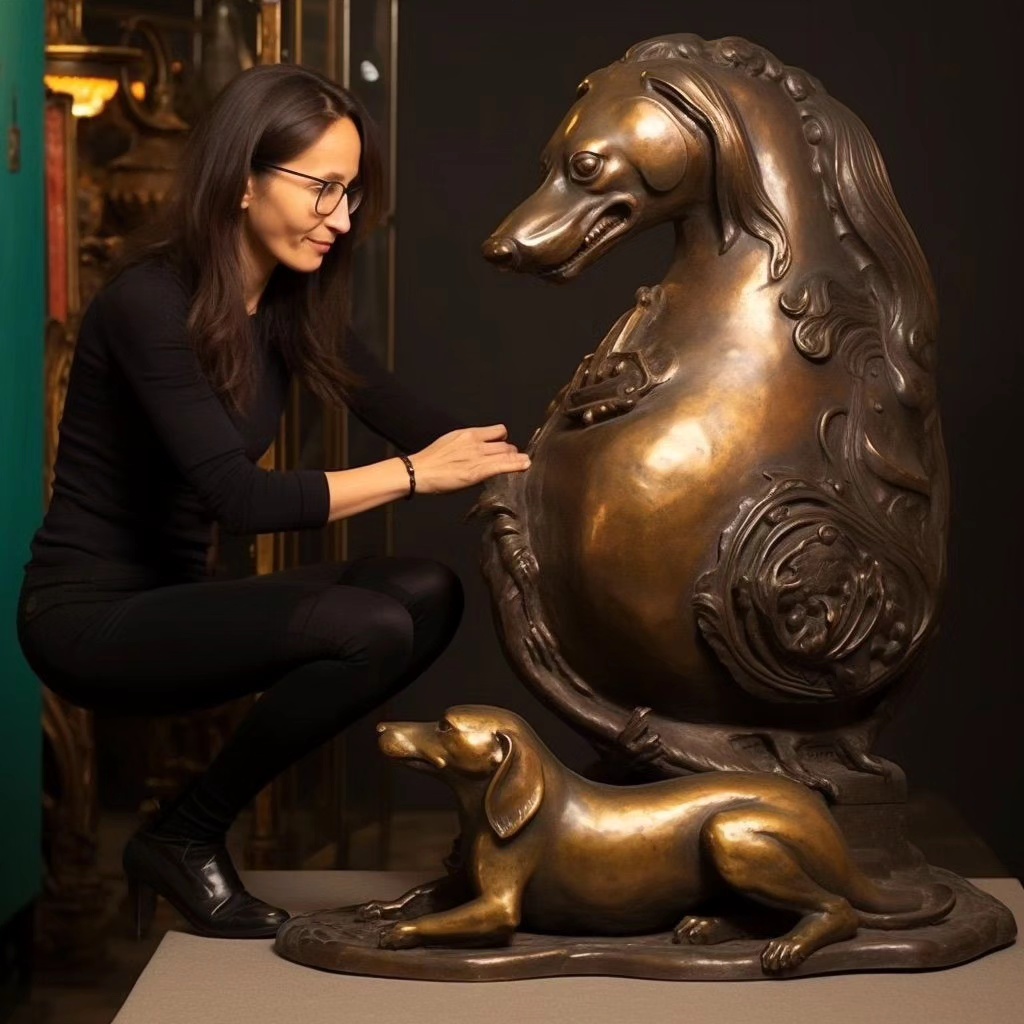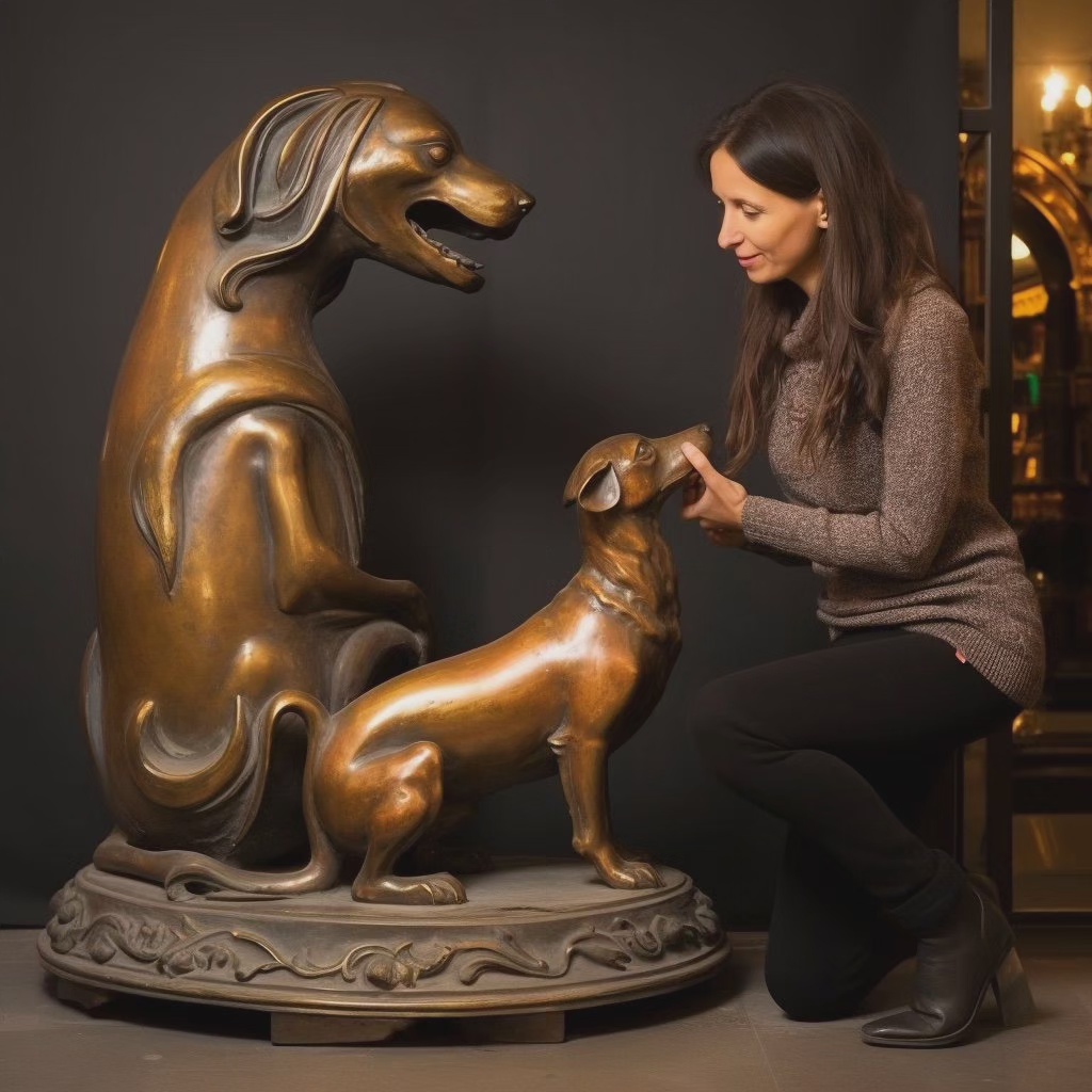 Mit meinen immensen wunderschönen Dackelbronzestatuen locke ich viele Frauen an. Dies nutze ich natürlich und fertige dann DackelFrauenBronzen an. Hierzu fabuliere ich einfach von einer Kunstaktion und gieße langsam ein wenig Bronze auf die Haut. Bis sie es merkt kommt sie schon nicht mehr los. Irgendwann fügt sie sich und macht ein ordentliches Gesicht für das Endprodukt. Vollbronze wäre viel zu teuer.