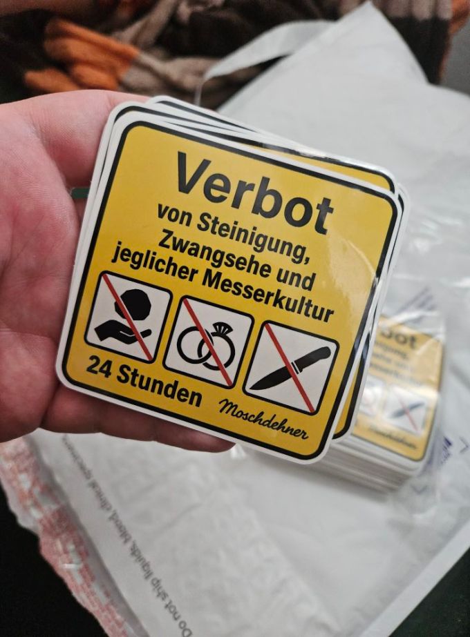 Ich dachte mir, warum auf halbem Weg stehen bleiben. Deshalb liefere ich nach. Steinigung, Zwangsehe, Messerkultur – alles jetzt verboten. Rund um die Uhr.