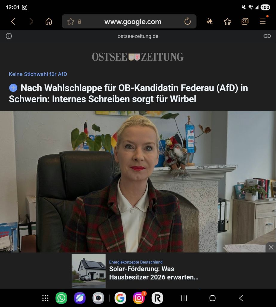 Meine Motivation war Frau Federau sehr wohl bekannt. Ich habe ihr meine Haltung nicht erst nach der Wahl öffentlich mitgeteilt, sondern bereits zuvor intern, und zwar am 04.02.2026 in der offiziellen WhatsApp-Gruppe der AfD Schwerin. Dort habe ich weder gepöbelt noch beleidigt noch eine Schlammschlacht eröffnet. Ich habe meine Kritik sachlich begründet und meine Fragen offen formuliert.