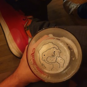 Doreen zeigt ein erotisches Löffelbild von Uwe