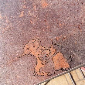 Senfmännchen betreibt Seifenfahrzeug mit Eigenatem