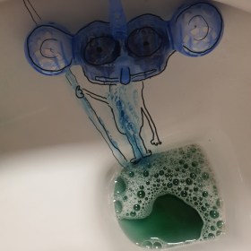 Königin wirft zwei Kuscheltiere in ein schwarzes Loch (Straßenpflaster in Livorno)