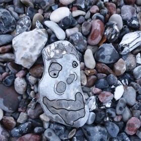 König der Affen mit Spielmenschlein und Kappe mit Schmuckgerippe