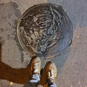 Wolfsfuchs in den Bergen liegt in einem Strauch.