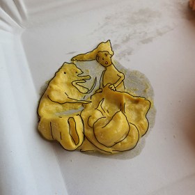 Bärchen hebt die Arme, weil ich auf ihm stehe.