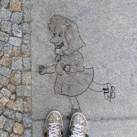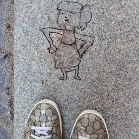 Weil Dagmar denkt, dass sie viel zu lange Arme hat, steht sie immer in dieser Haltung da.