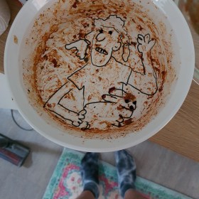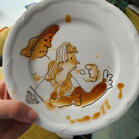 Hier serviert Evan einem Engel einen Zwergenkopf
