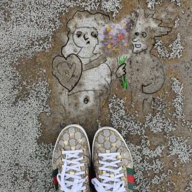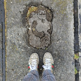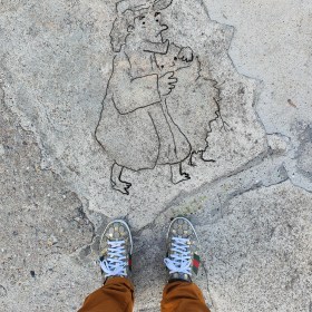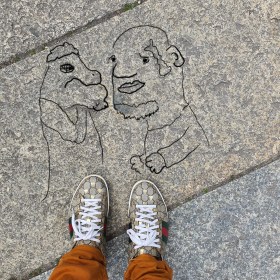 Karl Otto mit seinem WollknäuelKumpel Bamp beim Flanieren