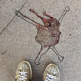 Im Springen die graue Haarfluse des verstorbenen Mannes fangen.