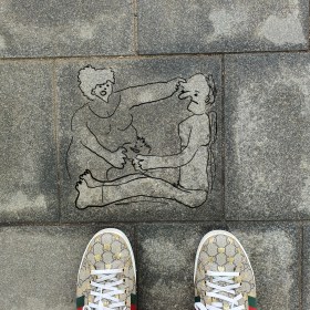 Einarmige Kriegsoma mit FakeNase (Granate) und Bündel voll Enkel.