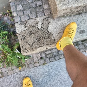 Erfolgloser Autor versucht mit einem Feuerpferdefroschkostüm mehr Aufmerksamkeit auf sein Buch zu erhalten. 21. Mai 2020