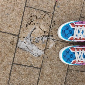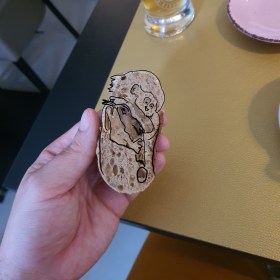 Tittenhäsin hat auf dem Arm einen Schmettervogel